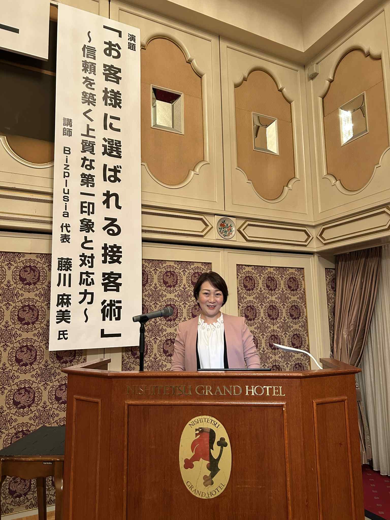 これまで数多くの企業研修やセミナーで登壇してまいりましたが、ホテル会場での開催は初めて。しかも、福岡を代表する老舗ホテルである西鉄グランドホテル様での講演ということで、身の引き締まる思いで臨みました。